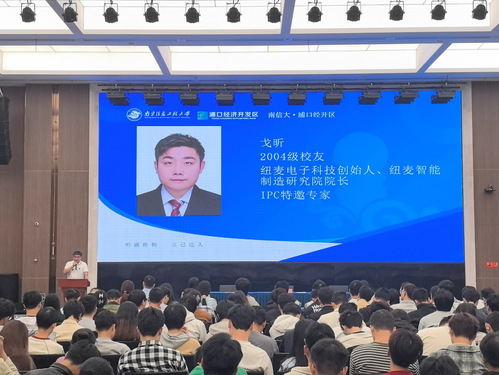 讲座中,戈昕校友聚焦集成电路领域分享。本科就读信息与计算科学专业的他,毕业后加入中美合资应急消防检测实验室,15年间辗转5个部门一线,从基层做到事业部经理,积累了扎实经验。2023年,他创办纽麦电子科技,深耕印制线路板检测,打造集检测服务、设备研发售卖、技术培训于一体的平台。