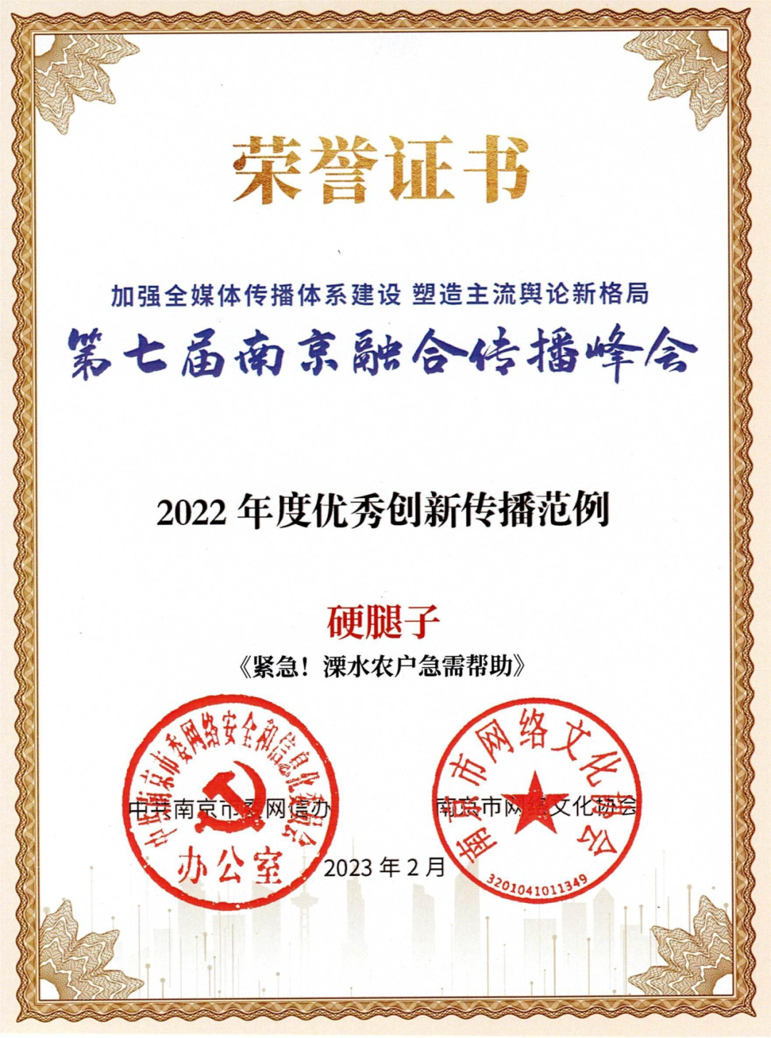 依托南京,放眼全国,硬腿子在本地生活基础上将短视频拓展至全国领域,目前拥有“宁有正能量”、“一条呆鱼”、“甩吃南京”、“倪大宝啊!”等百万级优质抖音账号,其中抖音账号“宁有正能量”,获得了2021中国正能量“五个一百”网络精品,百个网络正能量建设者荣誉。
