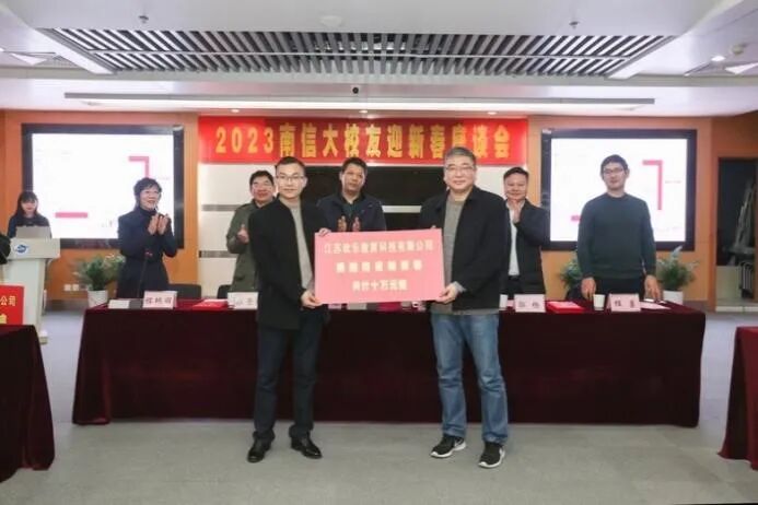 2023年1月8日下午,在南京信息工程大学图书馆724报告厅召开2023迎新春校友座谈会。2004级校友、江苏欢乐教育科技有限公司董事长冯英宝作为创业达人,为母校捐赠防疫物资10万元、捐赠校友创新创业基金20万元。基金将汇聚广大校友力量,支持母校“双创”工作、参与“双创”实践、共享“双创”成果。